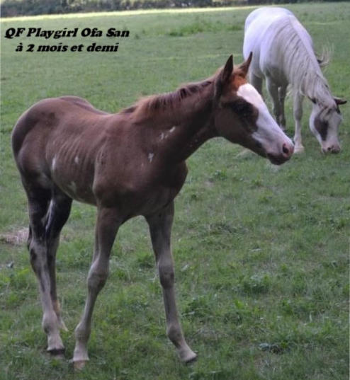 Le 16 mai 2013, elle a donné naissance à une superbe pouliche chestnut overo QF Playgirl Ofa San